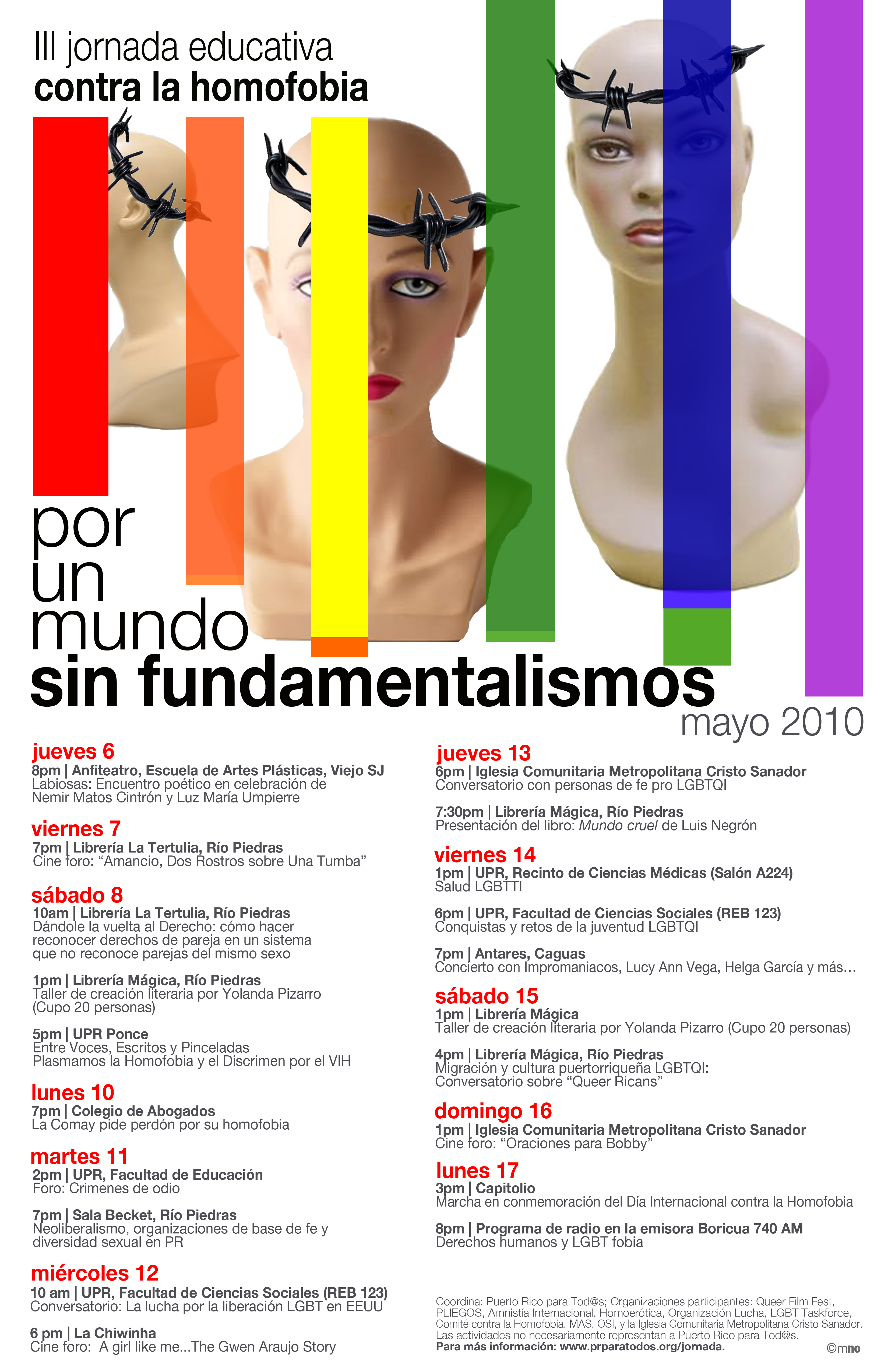 Por su parte, Serrano anunció que está en la Isla para participar de la III Jornada Educativa Contra la Homofobia, convocada por Puerto Rico Para Tod@s y con la colaboración de decenas de organizaciones y activistas, que se celebra hasta el 17 de mayo con una serie de conferencias, talleres, actividades culturales y marcha. De hecho, la marcha es organizada por el Comité Contra la Homofobia y el Discrimen y se llevará a cabo el lunes 17 de mayo a las 3 de la tarde, saliendo desde el Capitolio hasta la Catedral de San Juan. El itinerario de actividades puede ser encontrado en la página oficial de la jornada o en el grupo de la Jornada Educativa Contra la Homofobia.