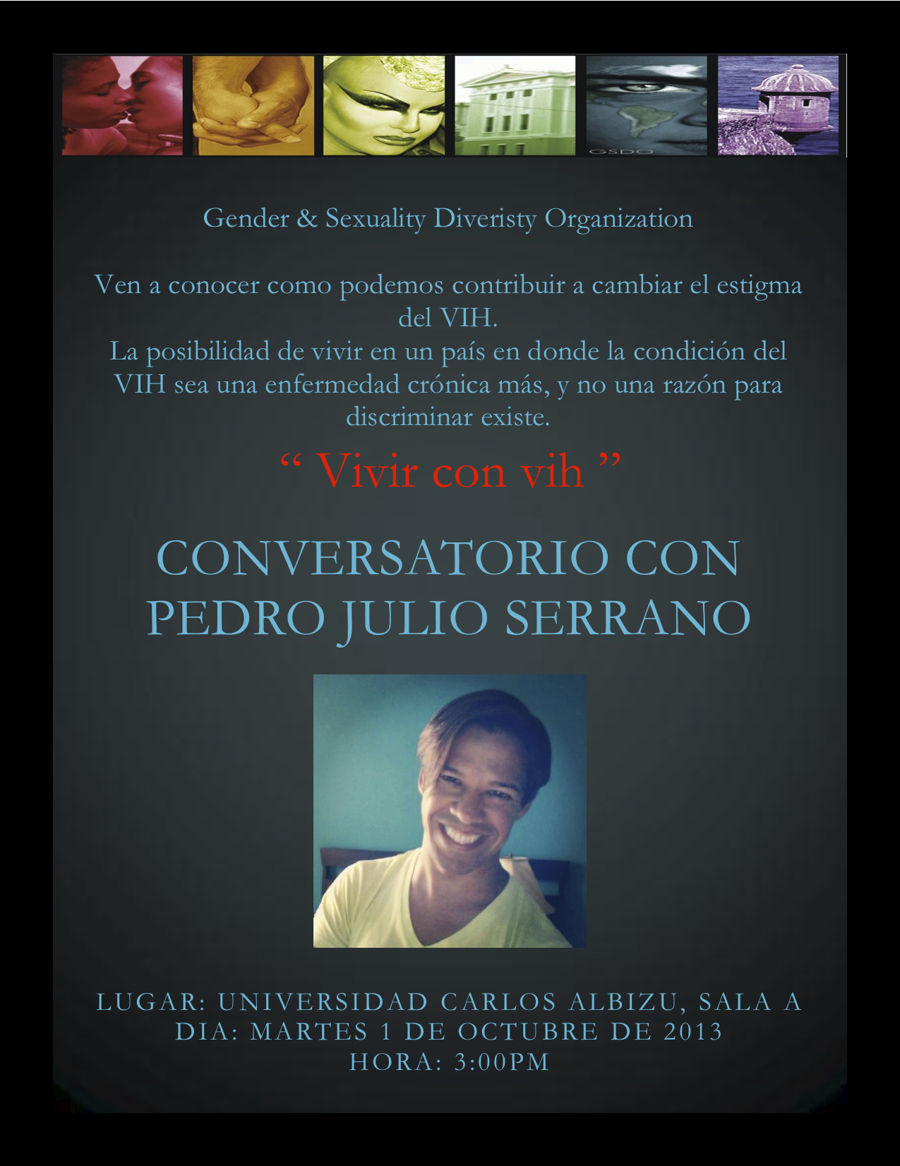 Por otro lado, visitaré la Universidad Carlos Albizu en el Viejo San Juan para ofrecer la charla «Vivir con vih».