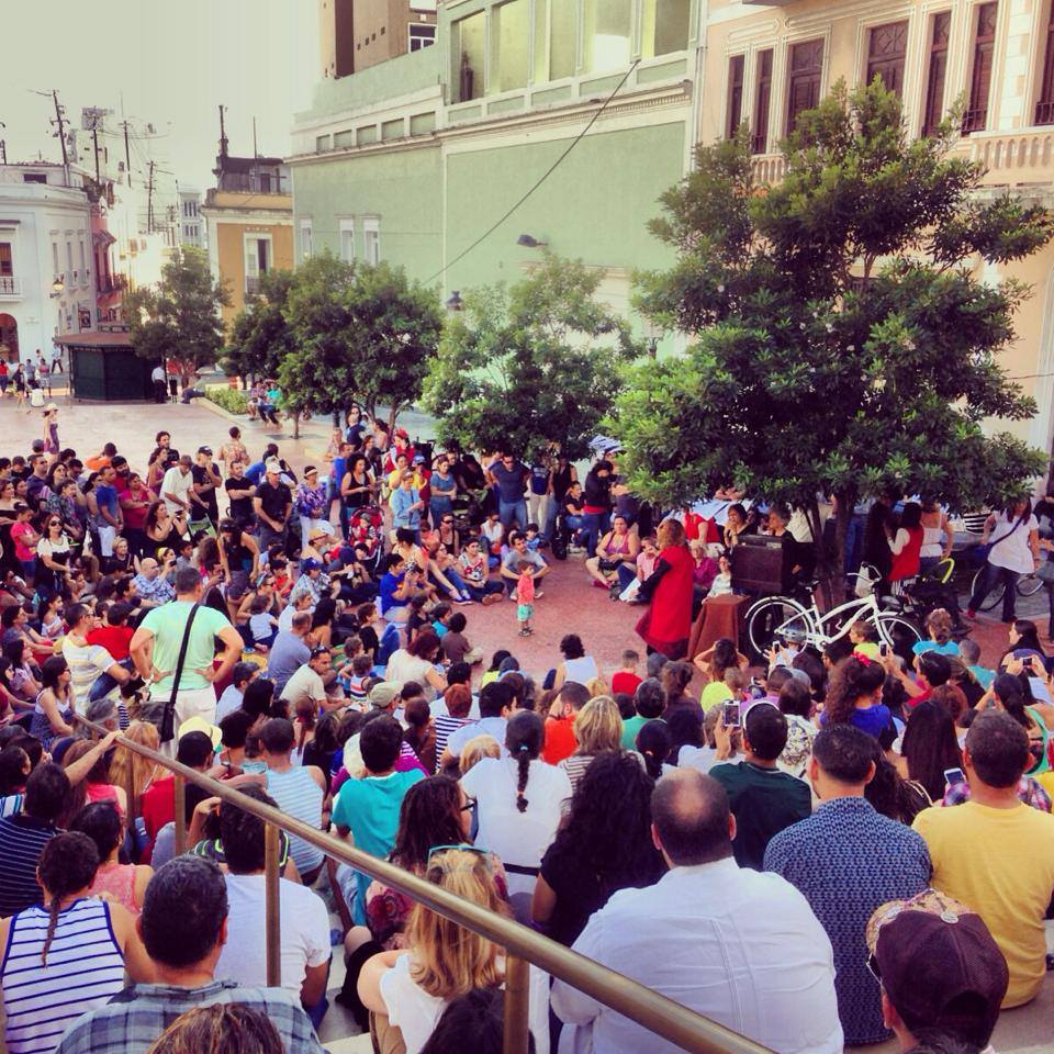 “Nació niño, pero era niña. Era una niña encerrada en el cuerpo de un niño…”, comenzó así la escritora Tere Marichal a narrar esta tarde su cuento “Carla Feliz” a decenas de niños y adultos sentados en la Plaza La Barandilla en el Viejo San Juan.