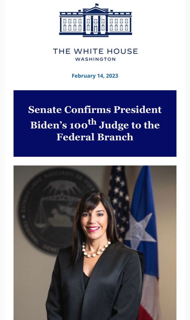 Eso sin contar que la Jueza Méndez Miró se convirtió en la jueza #100 en ser nominada y confirmada —por esta administración progresista de Biden— que busca revertir el daño que Trump hizo en las cortes federales con sus nombramientos radicales.