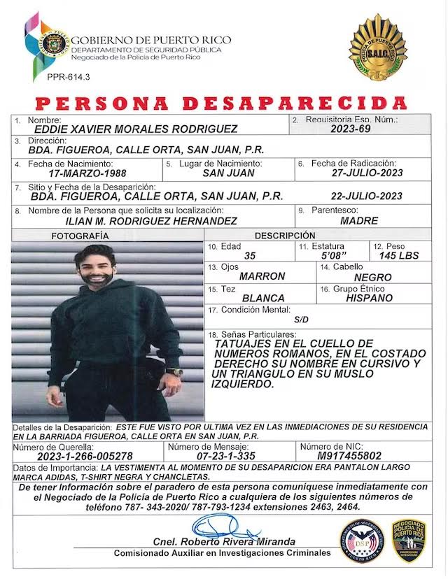 El activista se hizo disponible para continuar colaborando en lo que sea necesario “para poder dar tranquilidad a la familia” y dar con pistas que ayuden a dar con el paradero del hombre, quien salió el pasado sábado de su residencia en Santurce para realizar algunos viajes como conductor de Uber. Desde entonces, su madre y su familia, desconocen su paradero.