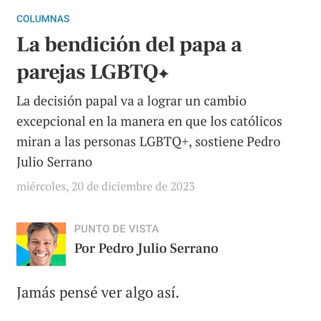 Como católico cultural y hombre gay, nunca imaginé que un papa ordenara a los sacerdotes bendecir a las uniones entre personas LGBTQ+.