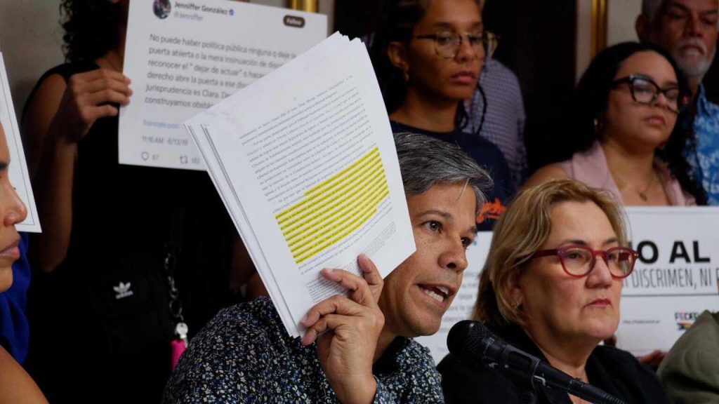 Además, la colectividad —que recoge a más de 100 organizaciones comunitarias y aliadas— reseñó las distintas instancias del pasado en que González Colón, desempeñando otras funciones, se opuso o detuvo legislaciones parecidas a la nueva Ley 14-2025. Por ejemplo, Serrano mencionó que la actual gobernadora rechazó las resoluciones 99 y 107 de la Cámara de Representantes que buscaban elevar a rango constitucional la prohibición de matrimonios igualitarios.